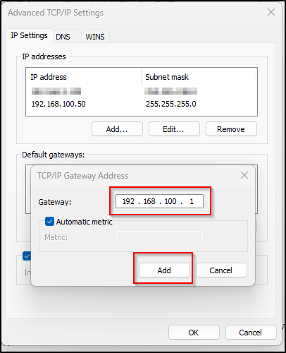 - Use 192.168.100.1 as the gateway address.