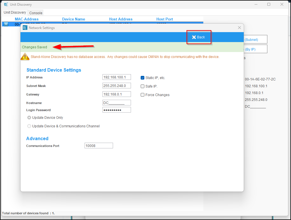 Once the device’s IP configuration has been saved: