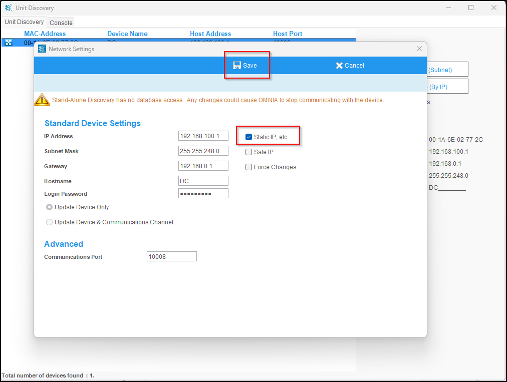 Yes. The OMNIA Discovery Tool is included with the OMNIA software installation and is required to locate the device and update its network settings.