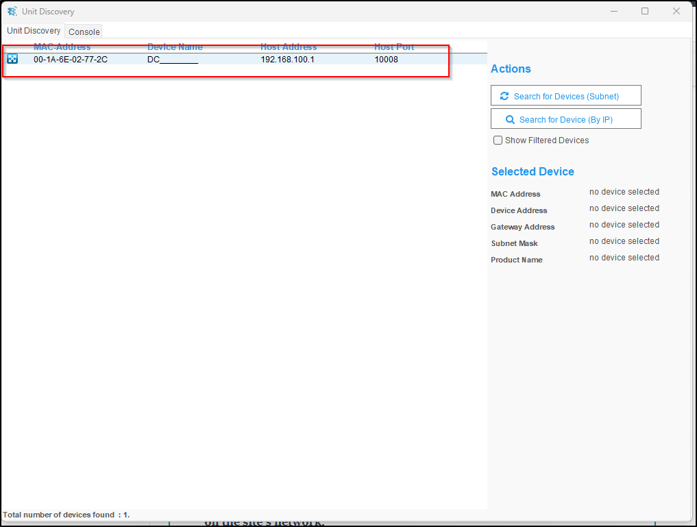If the device has an unknown, incorrect, or unreachable IP address, it may not respond to network discovery tools. In these cases, a direct laptop connection is required to manually assign a valid IP address.