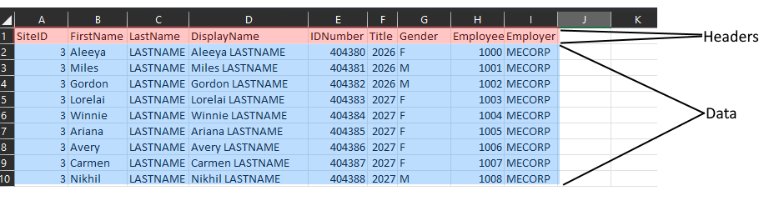 2. The minimum needed data to import is First Name, Last Name, and ID Number