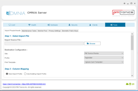 1. Go to the OMNIA Server Application and select the TOOLS tab: