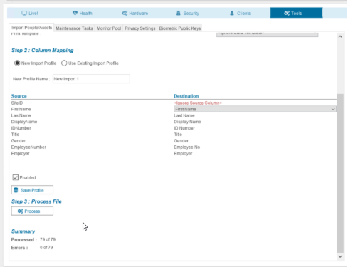 The saved profiles will be available for subsequent imports using the same .CSV file.